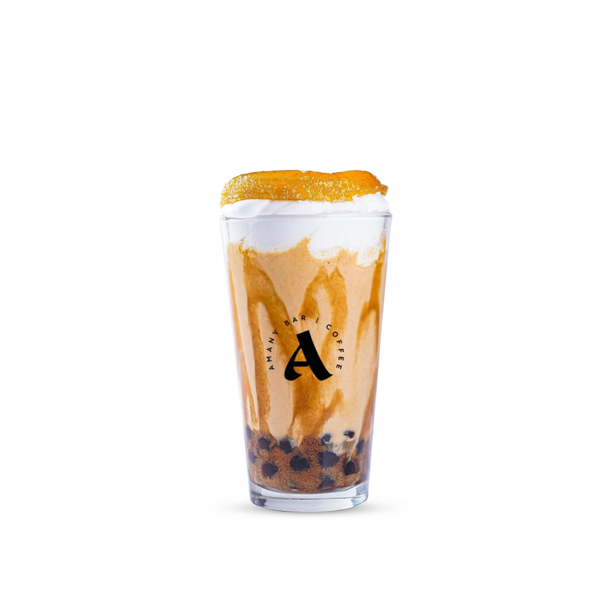 רכיבים( תה שחור, חלב, קרח ,טופיוקה, קרמל)